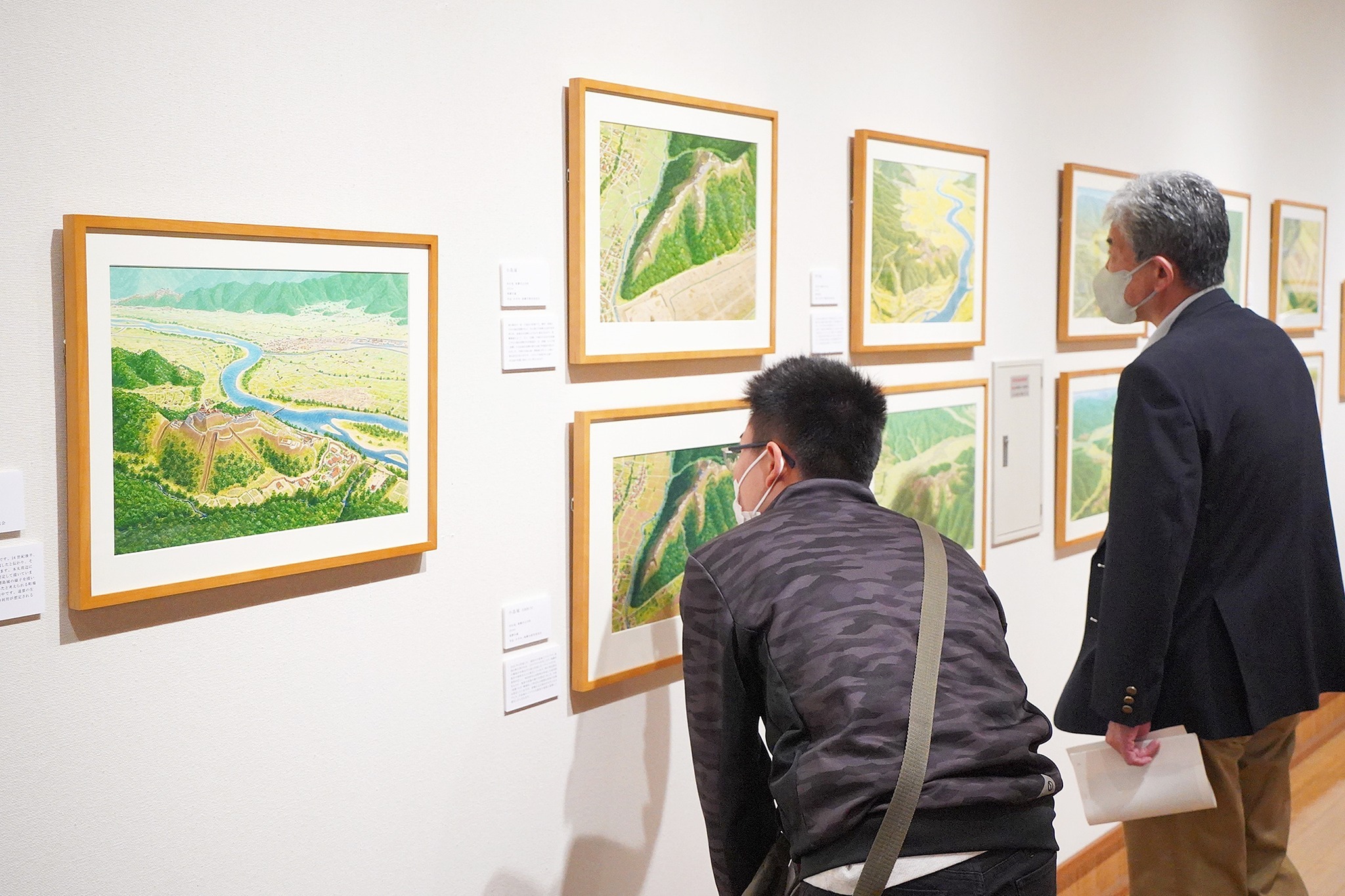 市学芸員の大下さんは「当時のことを分かりやすく理解いただけるよう、香川先生にイラストを描いていただきました。『山城が当時どういうふうに守っていたんだろう』といったことを、展示してある絵を見て実感したり想像していただけたら」と話していました。