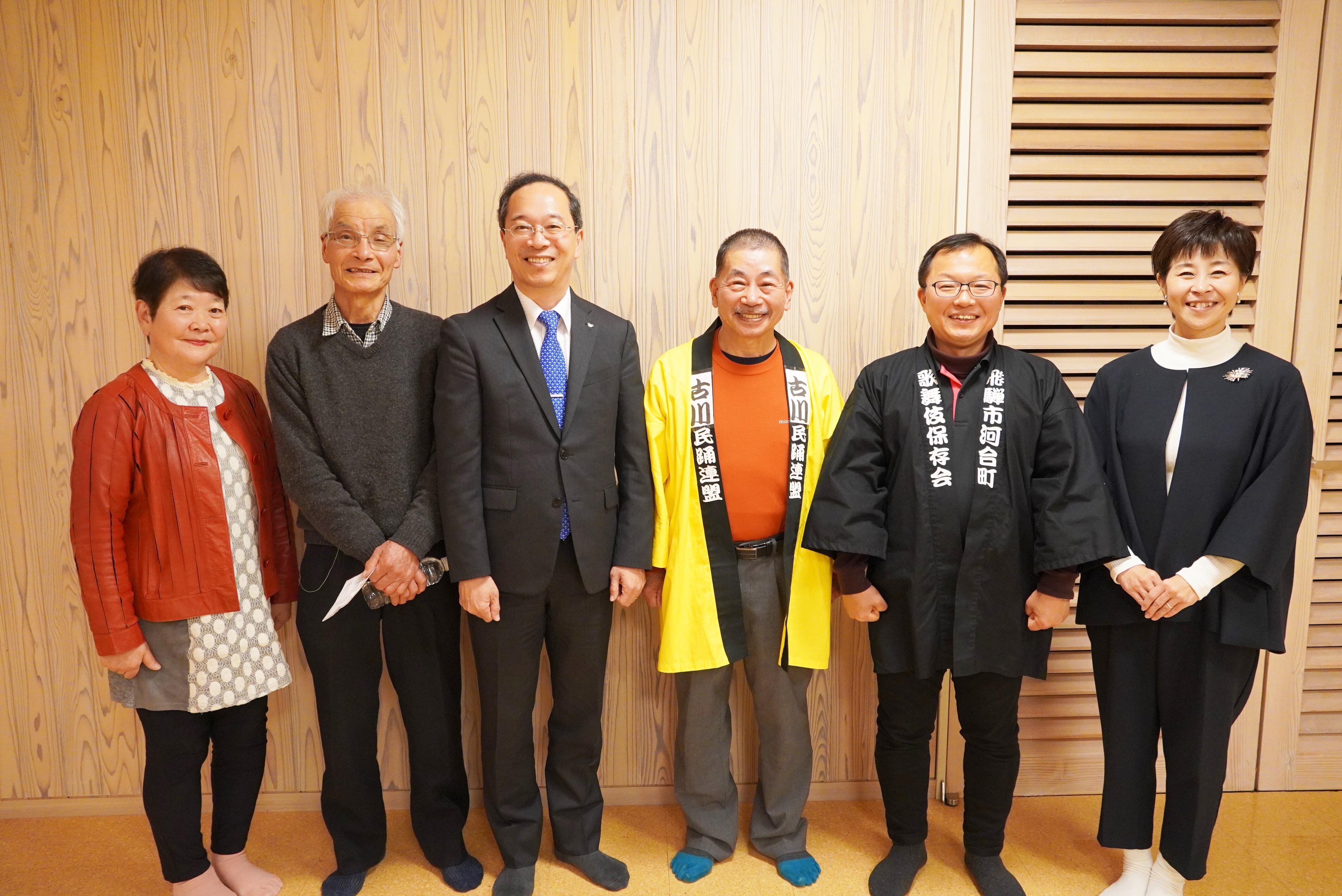 この日は、飛騨市河合歌舞伎保存会会長大下哲也さん、神岡町で活動する藤橋会前実行委員長澤田忠久さん、同会結城高枝さん、古川民踊連盟副会長の稲葉春雄さんの4名をゲストに迎え、活動の様子や思いを伺いました。