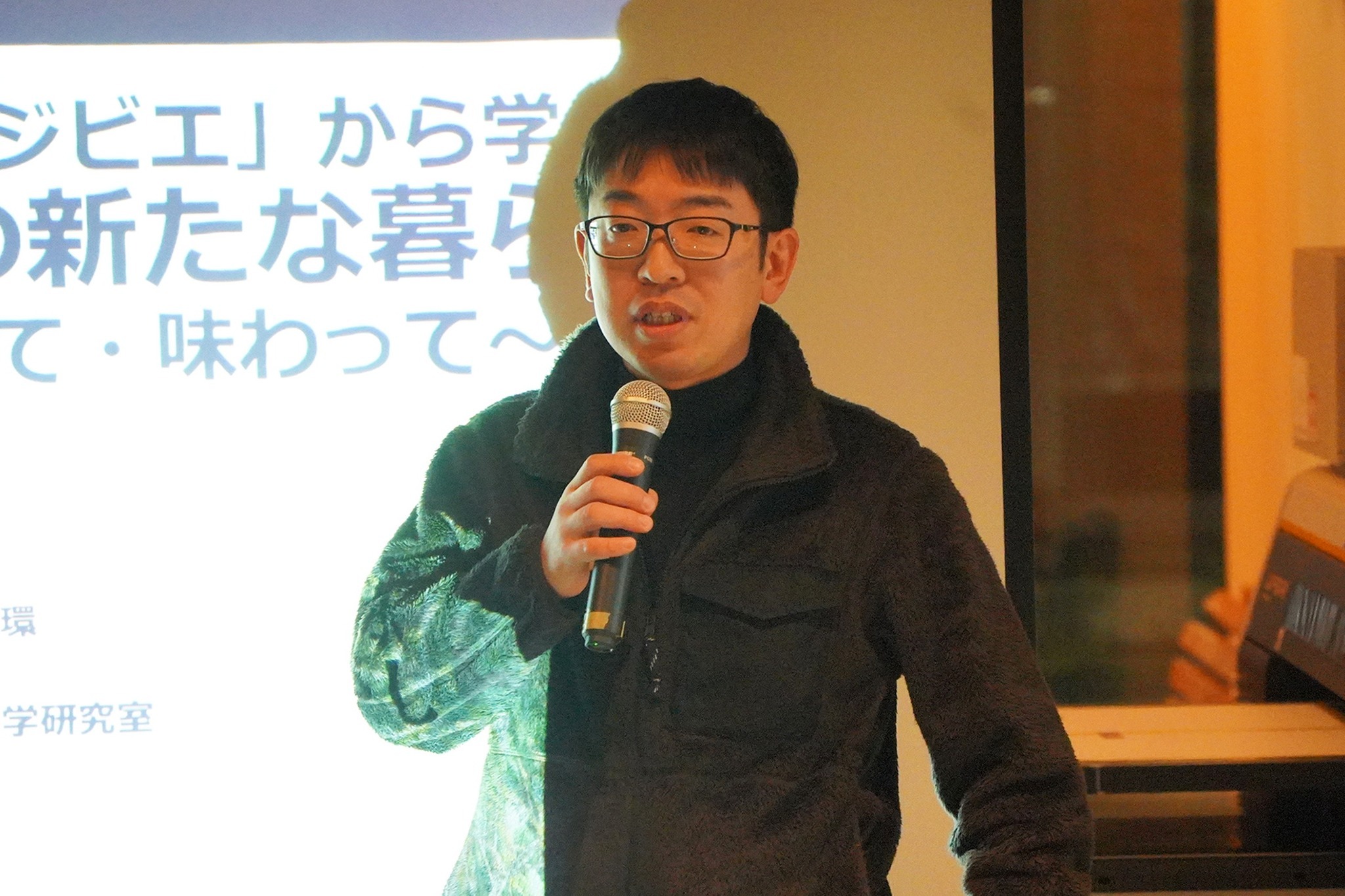 森部准教授は、30年ほど前は捨てられたり身内だけで消費していた魚「ゲンゲ」や、10年ほど前にはあまり食べられていなかったシカが近年は見直され、料亭などで提供され始めた現状を紹介。「たった10年でも価値は変化する」とし、獣害対策などで駆除されたシカなどの野生動物も「もったいないから食べる」「家畜のえさにする」という考えでなく、「美味しいから食べる」「心地いいから使う」と考えていく方が健全ではないかと強調しました。また、多くの種類の森林植物を大量に食べるシカを例にあげ、「シカを食べるということは、地域の森林の植物を間接的に食べていることになる。私はこれを間接的森林食と呼んでいます」と紹介しました。