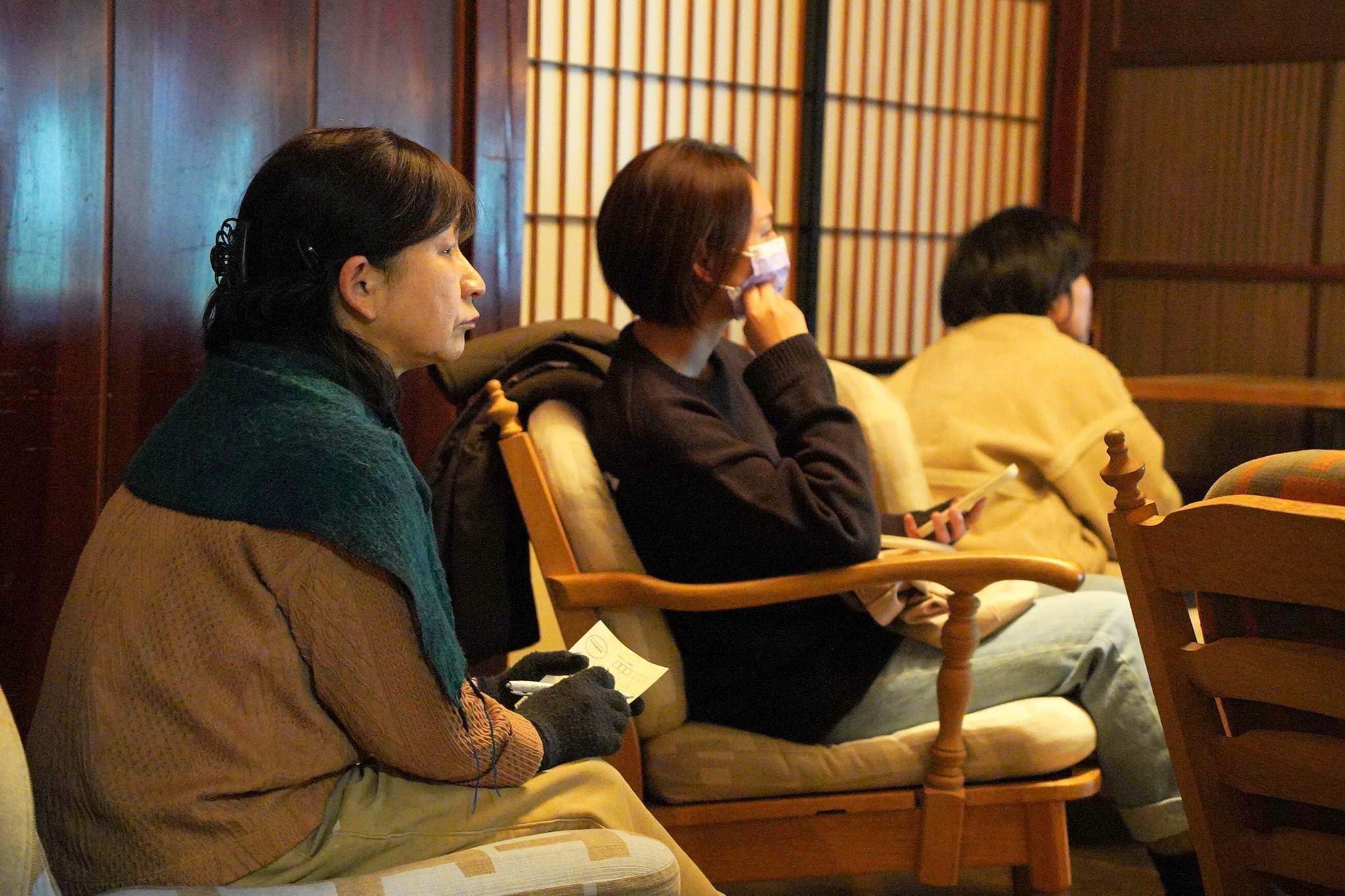 この日は約15人が参加し、メモを取ったりしながら熱心に耳を傾けました。また、野生動物に対する考え方や受講して分かったこと、疑問に思ったことなどを近くの席の人と話し合ったり、森部准教授に質問して学びを深めました。古川町の古田裕子さんは「ジビエにはあまり興味はなかったのですが、森林環境に関心があって参加し、興味深い話を聞けました。ジビエを食べることで森が体に入って滋養になる『間接的森林食』の体験ができて良かった。思いがけずイノシシ肉が美味しかったです」などと感想を話していました。