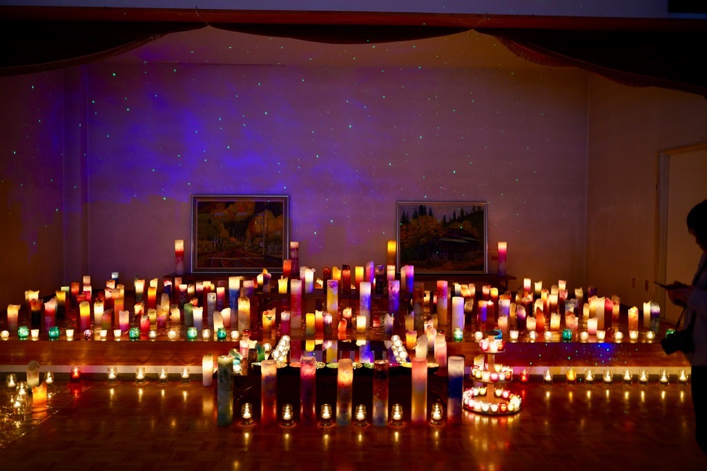 キャンドルナイトは地元の女性会に制作いただいたキャンドルに加え、荒木美鈴さんの絵画も展示されました。魚津市在住で宮川町に所縁のあるキャンドルアーティスト中澤泰一さんの作品も展示して会場を彩りました。中澤さんは「宮川町の資源を活用した装飾するのを心がけました。キャンドルのイベントは飛騨市ではあまりないので来場者の方にいろいろな角度で写真や動画を撮影してもらって発信してもらえるように工夫しました」と話していました。