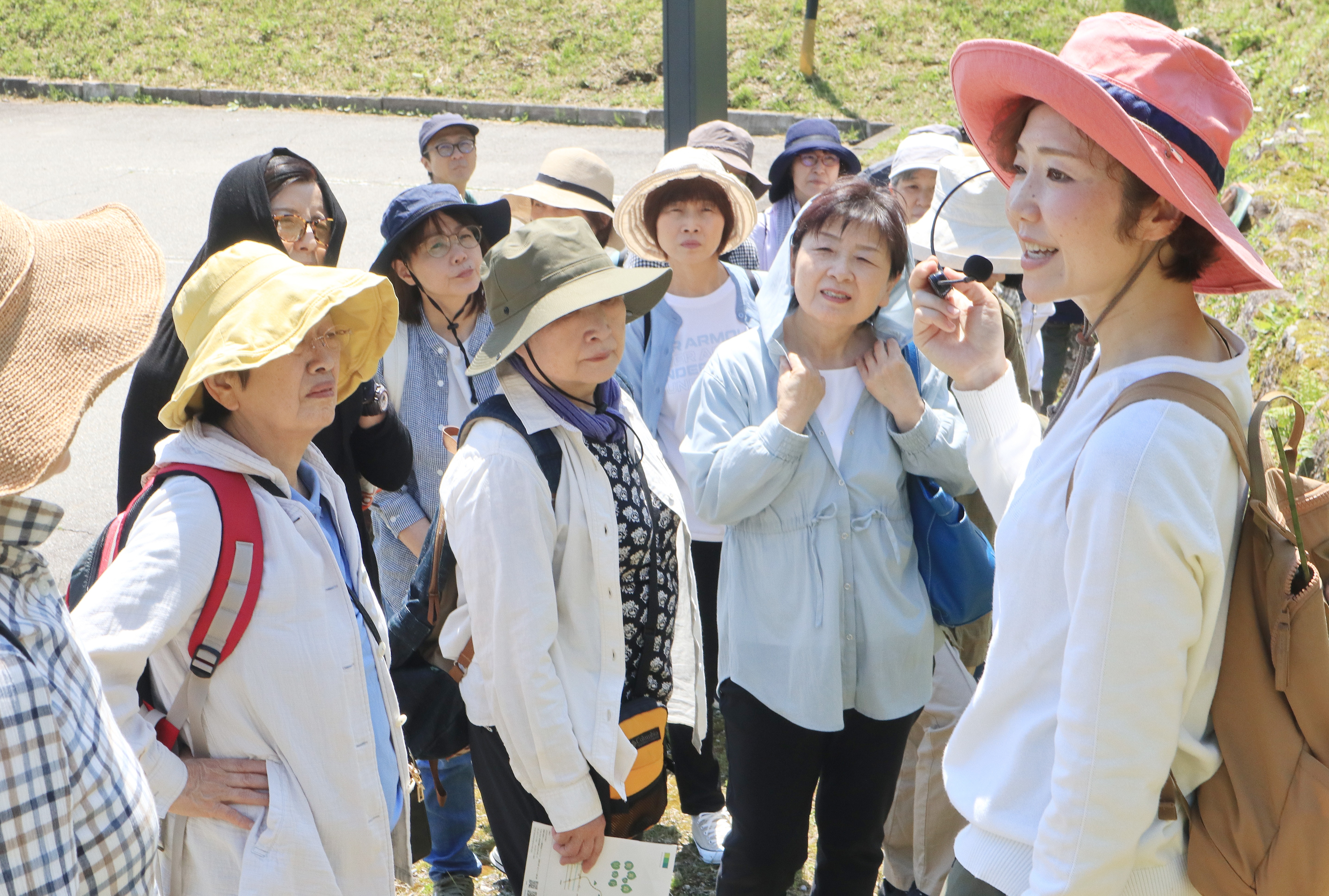 講師は長年、市の薬草事業に携わり、今年4月からLib.(りぶぽわん)を主宰し、薬草活用の普及に務めている岡本文さんです。今回は市内外から約20人が参加し、古川町黒内にある朝霧の森を散策しながら、クロモジなどさまざまな薬草を観察し、岡本さんの解説に耳を傾けました。