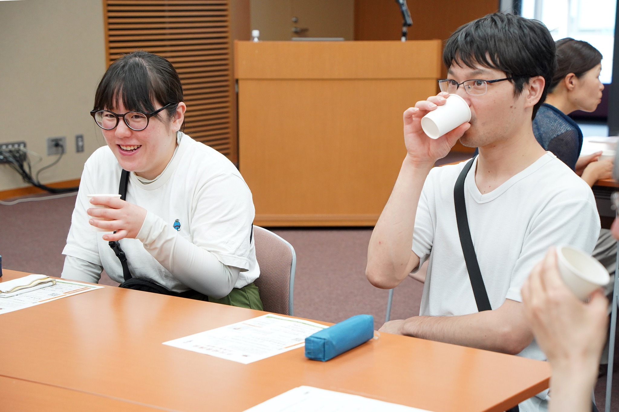 煎じている間、早川教授は葛根湯に使われている生薬それぞれの薬用部位や効能などの特徴を1つひとつ丁寧に説明。「葛根湯に似た和漢薬に桂枝湯というのがあり、これには葛根と麻黄が入っていません。これによって、元気のある人には葛根湯を、元気のない人には桂枝湯を処方するなどの違いがあります」などと紹介しました。葛根湯が出来上がると、参加者は「すごく良い匂いがする」などと談笑しながら試飲したり、生薬を直接かんで味わったりしていました。