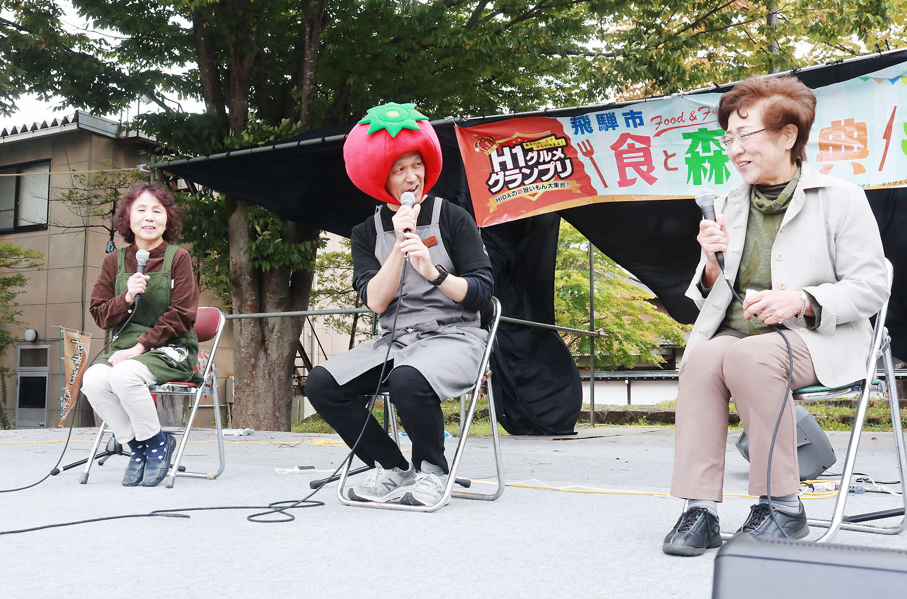 飛騨のうまいもんナンバーワンを決める「H1グルメグランプリ」を始め、飛騨市食の大使・工藤英了さんや市内農家の皆さんによるトークセッションなど盛りだくさんの出し物が楽しめる「飛騨市食と森の祭典」が開かれました。