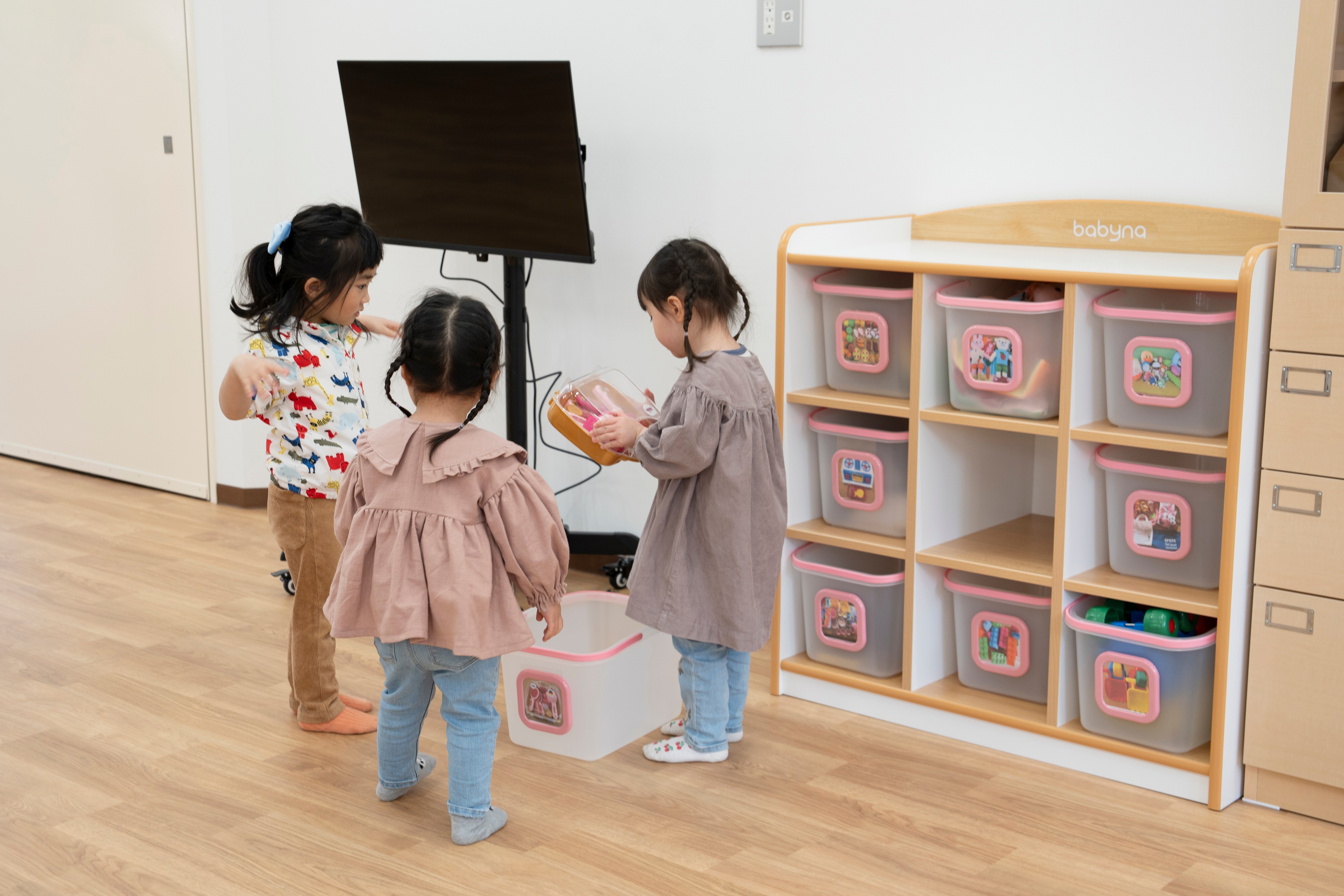 新園舎見学会では、宮川小学校の校舎内に移転した新園舎が開放されました。すでに子どもたちが楽しそうにおもちゃで遊ぶ姿も見られ、保護者からは「小学生の兄弟がいるので、一緒の場所に通えるのが嬉しい」といった声が聞かれました。