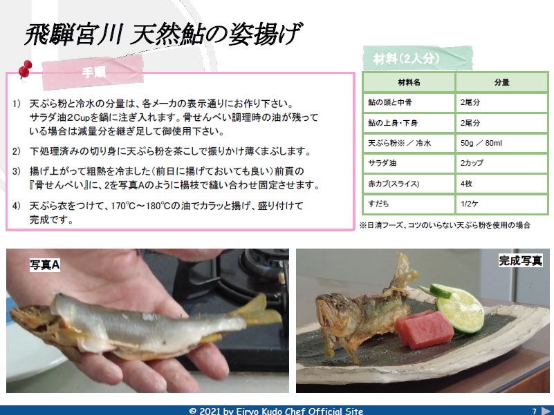 「飛騨市食の大使」工藤英良氏が提案する鮎料理~鮎の姿揚げ編~